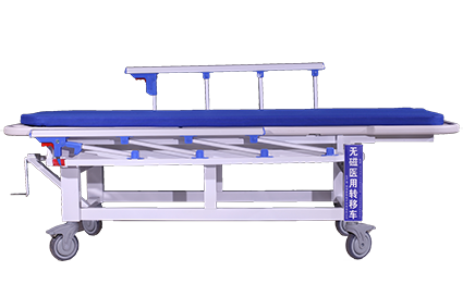 2. Smooth lifting, with self-locking function.Rack and pinion and control linkage device lift, with self-locking function, you can use the bed plate left and right translation patients, without carrying people over the bed.